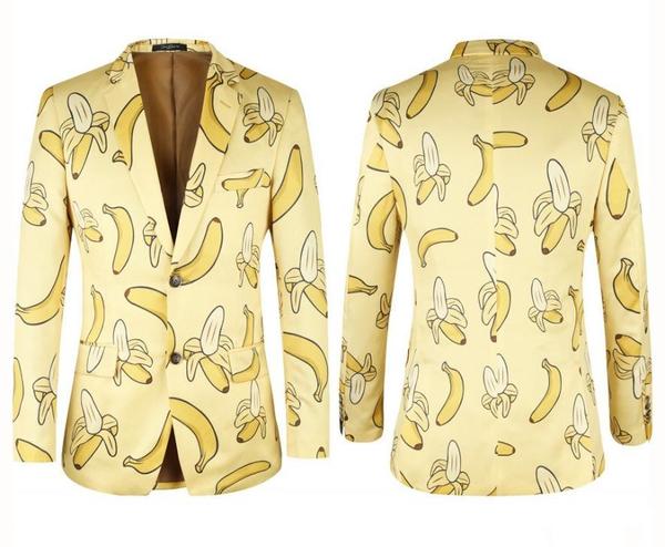 Our?Slim-Fit?Banana themed Blazer?is made of premium?fabrics that were developed specifically for the purpose of die-cut printing the design. Hence, it is made to last you for several?festive seasons/parties to come!