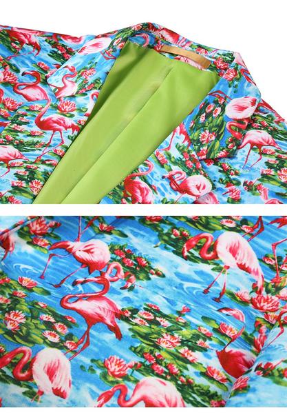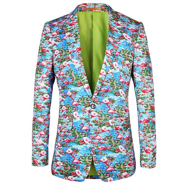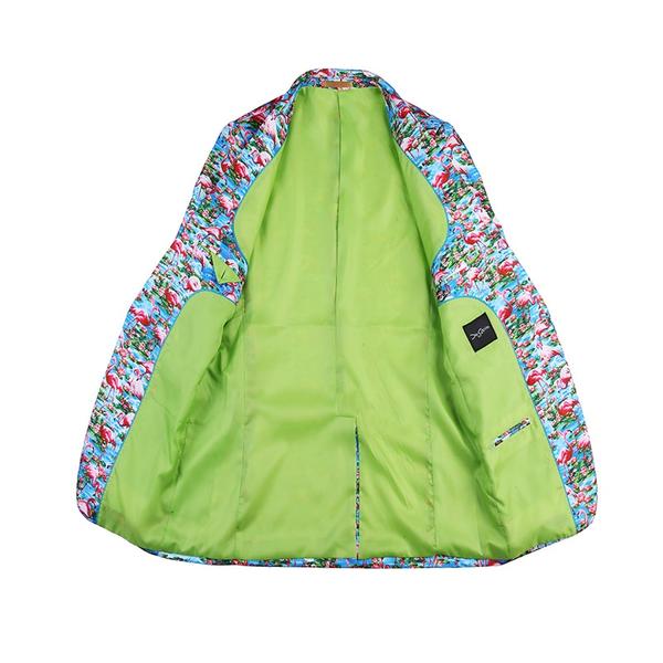 Our?Slim-Fit?Flamingo themed Blazer?is made of premium?fabrics that were developed specifically for the purpose of die-cut printing the design. Hence, it is made to last you for several?festive seasons/parties?to come!