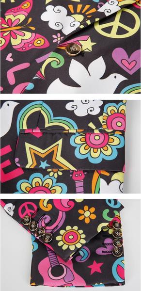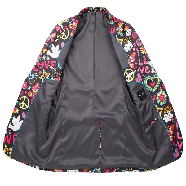 Our?Slim-Fit?Peace & Love themed Blazer?is made of premium?fabrics that were developed specifically for the purpose of die-cut printing the design. Hence, it is made to last you for several?festive seasons/parties?to come!
