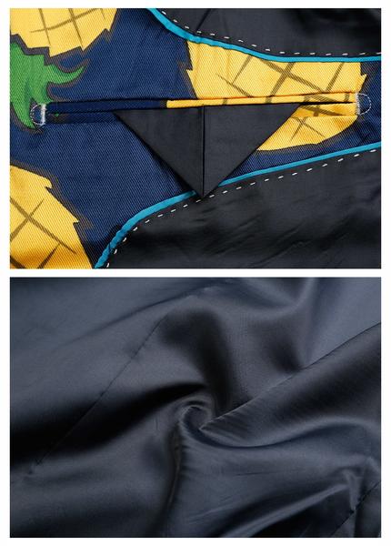 Our?Slim-Fit?Pineapple themed Blazer?is made of premium?fabrics that were developed specifically for the purpose of die-cut printing the design. Hence, it is made to last you for several?festive seasons/parties?to come!