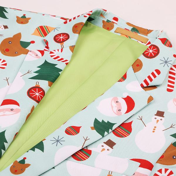Our?Slim-Fit Christmas themed Blazer?is made of premium?fabrics that were developed specifically for the purpose of die-cut printing the design. Hence, it is made to last you for several?festive seasons/parties?to come!