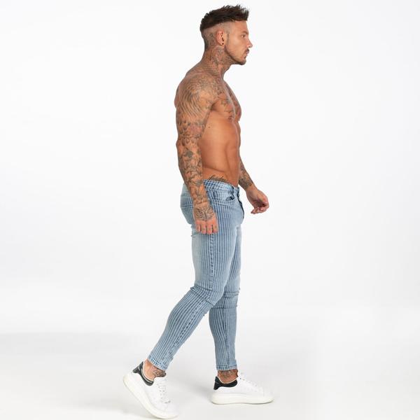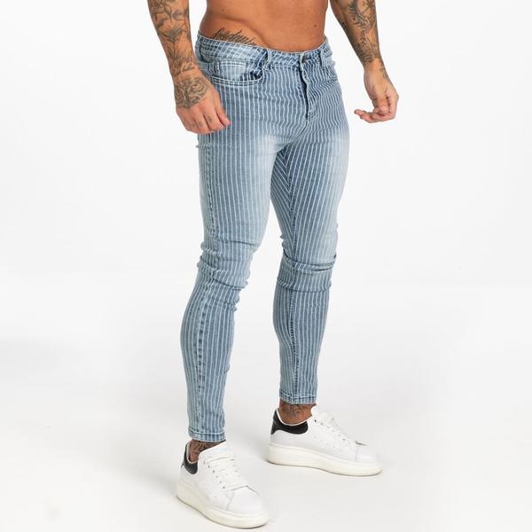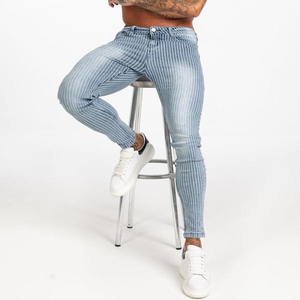 - 3117 Faded Blue Striped Skinny Stretch Jeans