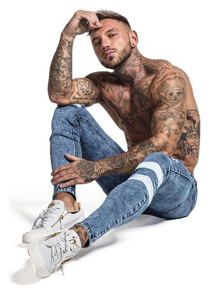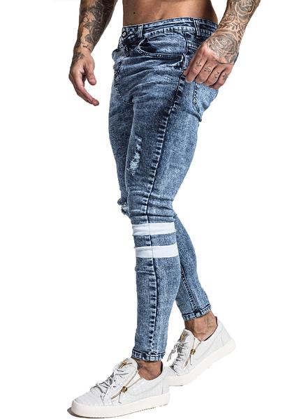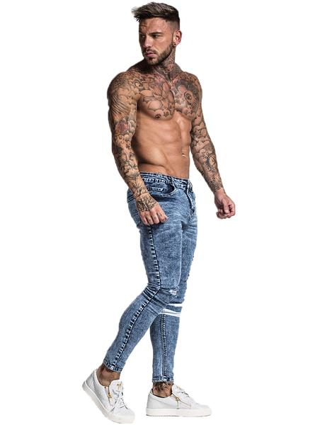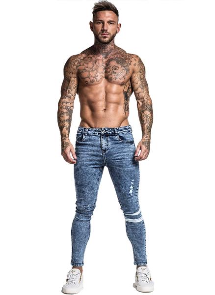 - 3759 Faded Blue Pleated Skinny Stretch Jeans