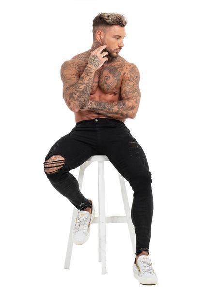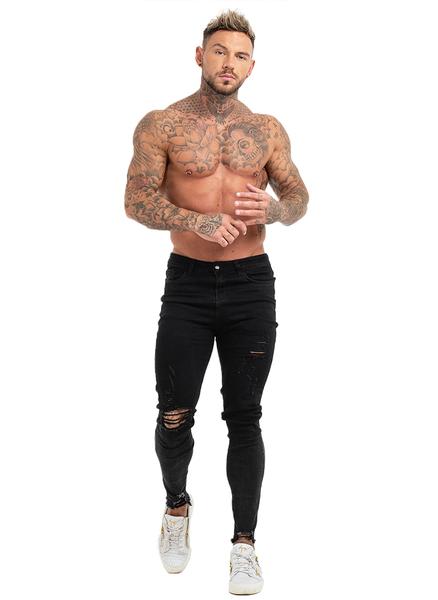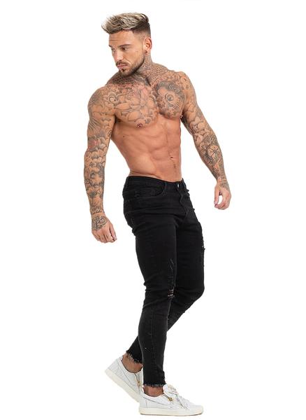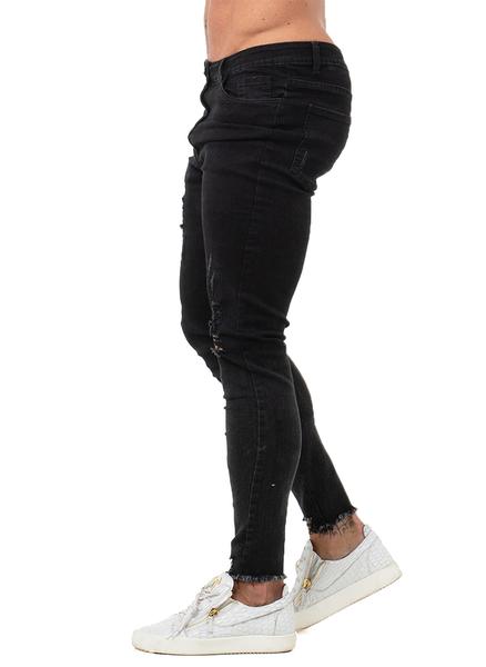 - 3766 Distressed & Frayed Black Skinny Stretch Jeans