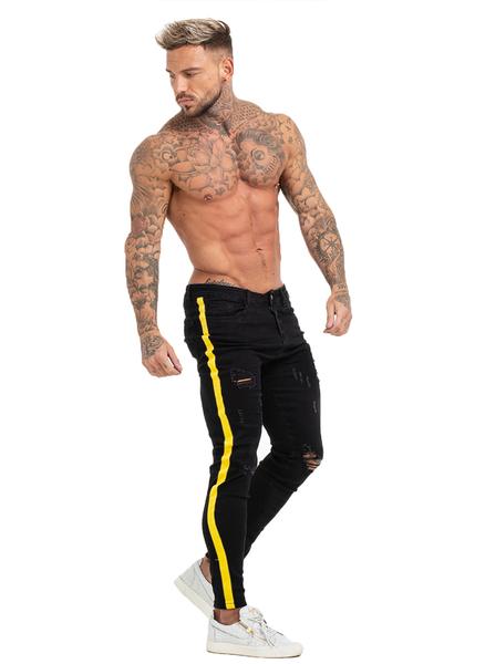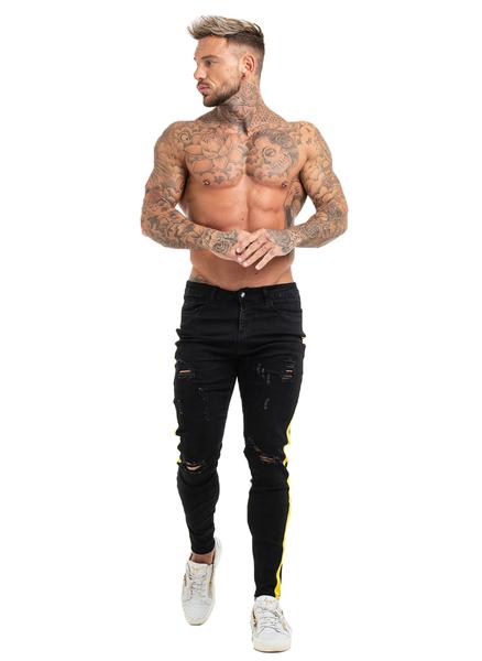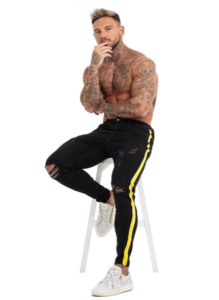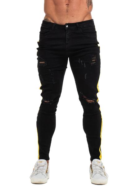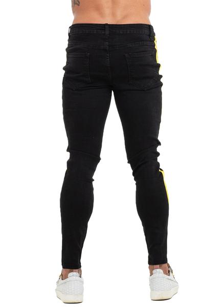 - 3768 Black Ripped Side Stripe Skinny Stretch Jeans