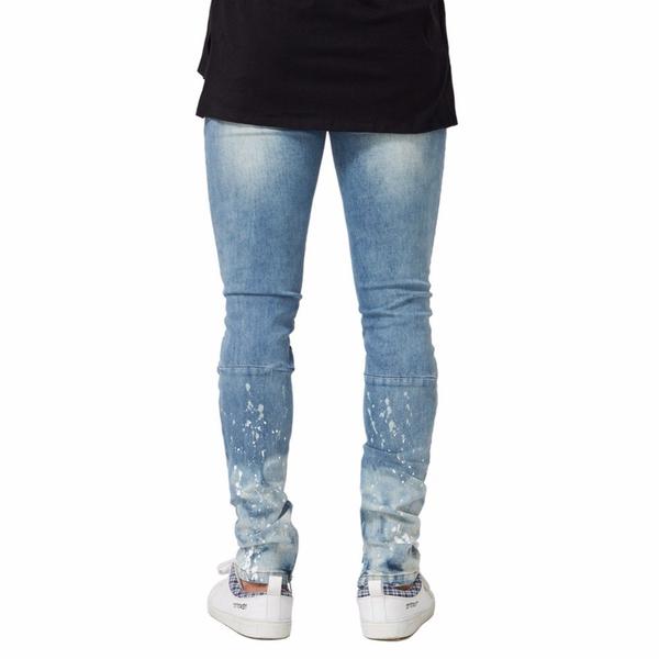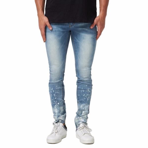 - 3754 Brush Side Stripe Ripped Skinny Stretch Jeans