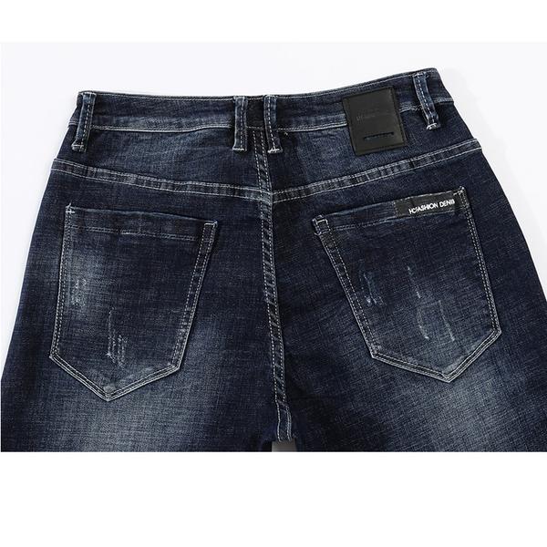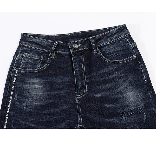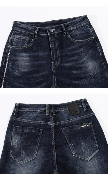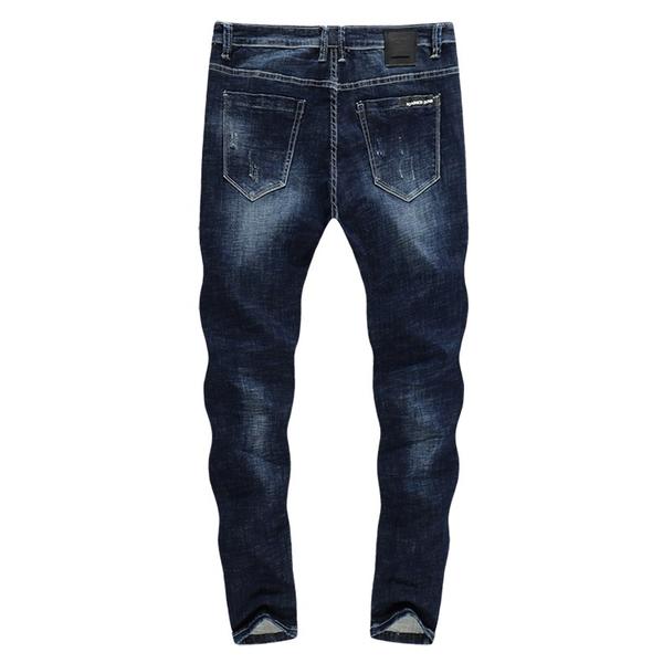 - Skinny Ripped Musical Notes Tapered Jeans - Dark Blue