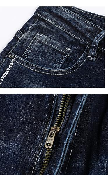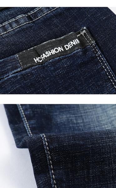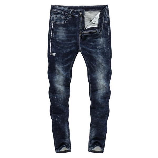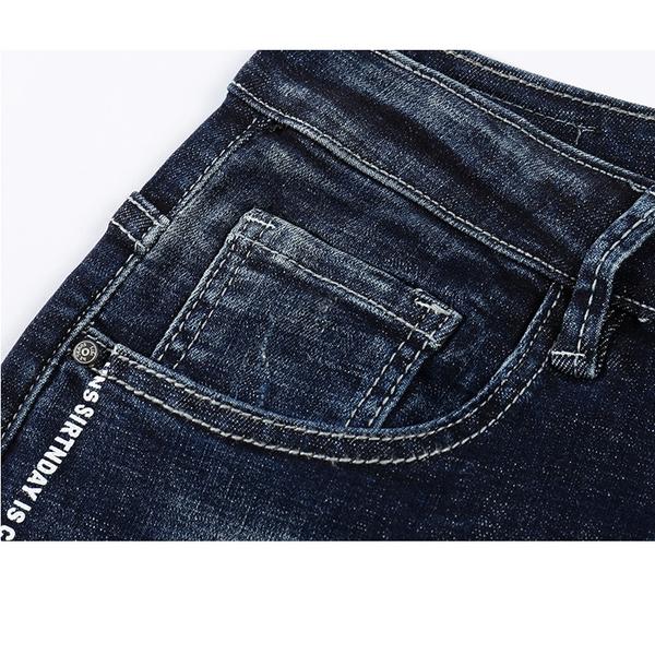 - Skinny Printed Stripe Tapered Jeans - Deep Blue