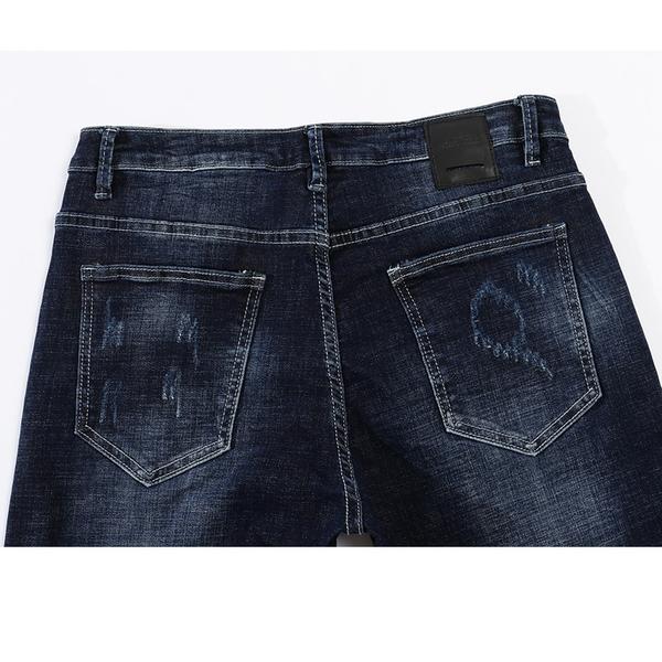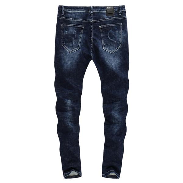 - Skinny Ripped Tapered Jeans - Dark Blue