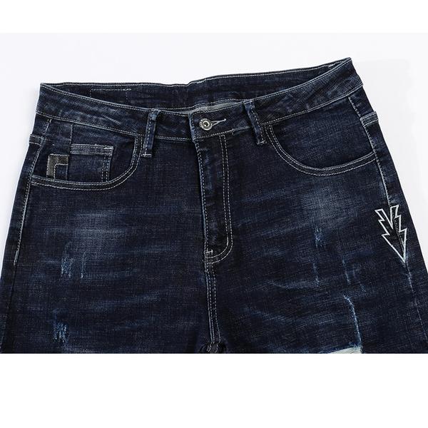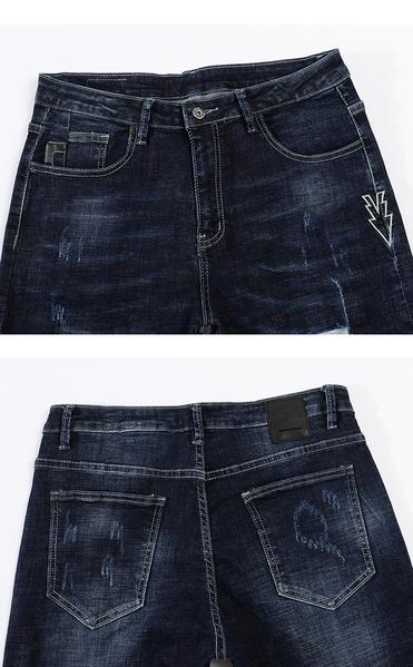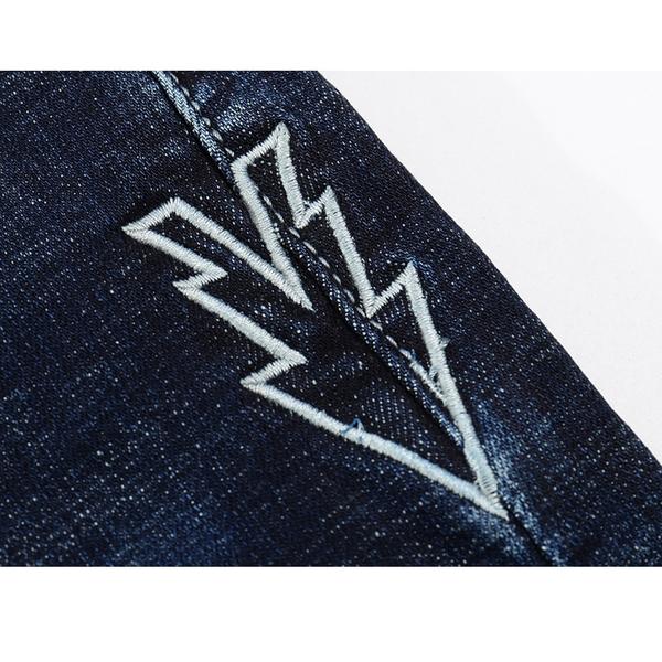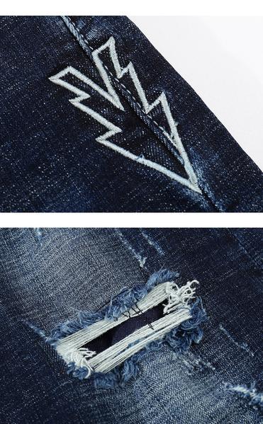 - Skinny Ripped Musical Notes Tapered Jeans - Dark Blue