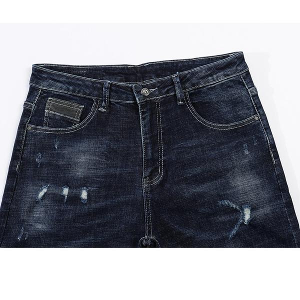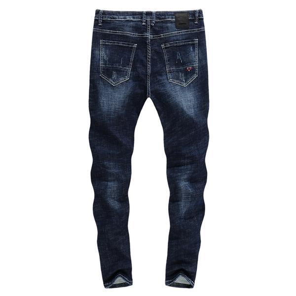 - Skinny Ripped Musical Notes Tapered Jeans - Dark Blue
