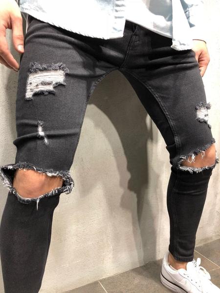 - Burnt Grey Ripped Skinny Ankle Zipper Jeans