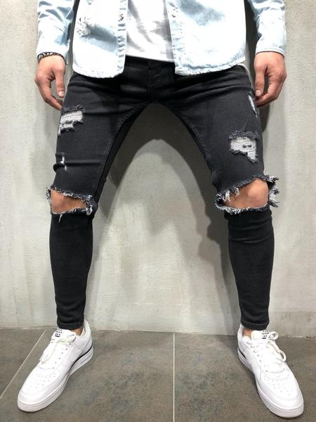 - Black Knee Ripped Distressed Ankle Zipper Jeans