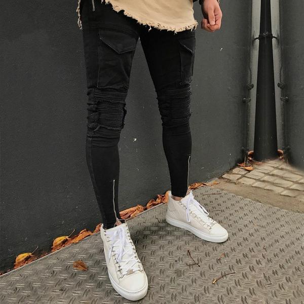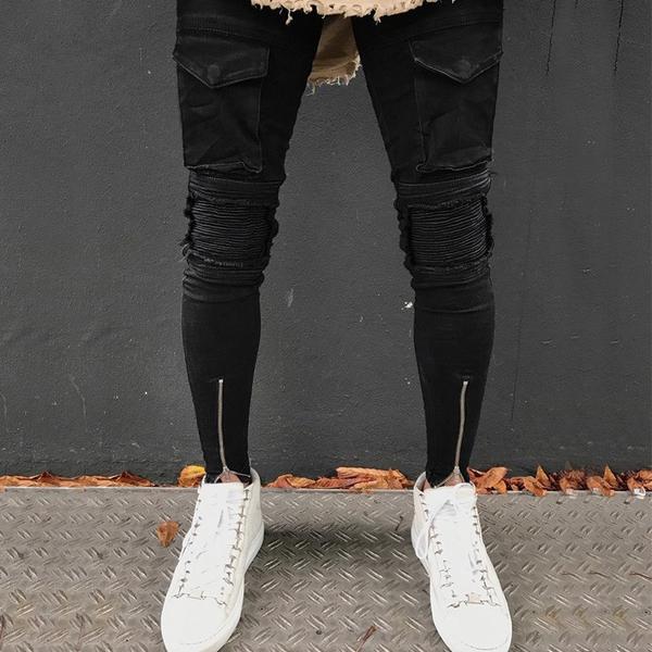 - Premium Distressed Skinny Ripped Ankle Zipper Jeans