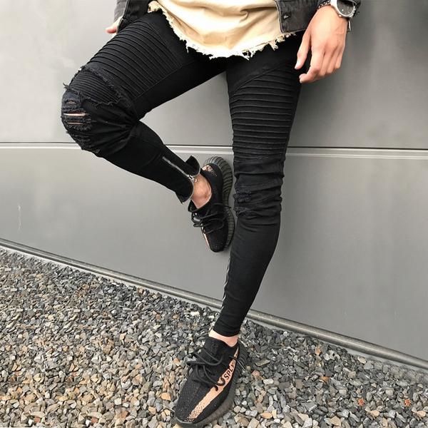 - Blue Skinny Pleated Knee Ripped Jeans