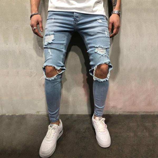 - Dual Tone Skinny Ripped Ankle Zipper Jeans