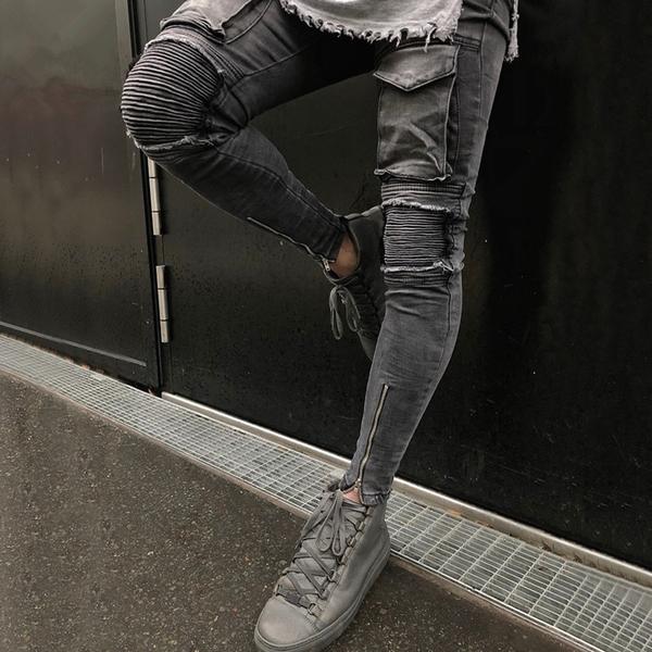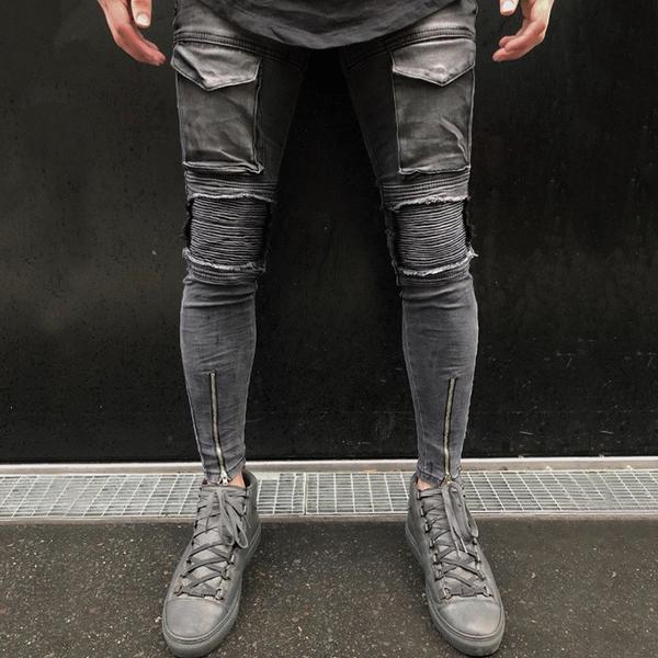 - Burnt Grey Ripped Skinny Ankle Zipper Jeans