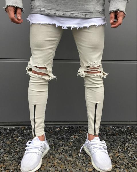 - Distressed Knee Ripped Side Stripe Ankle Zipper Jeans